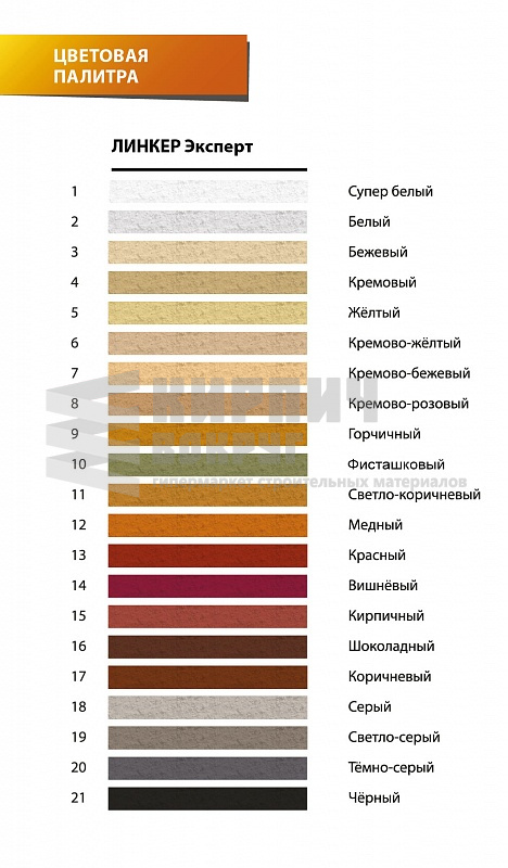 Палитра цветных кладочных смесей позволяет получить кладочный раствор, цвет которого при затвердевании соответствует цветовой гамме облицовочного кирпича. Такие смеси обеспечивают надежную кладку как керамического, так и силикатного кирпича и соответствуют всем требованиям, предъявляемым к кладочным растворам.